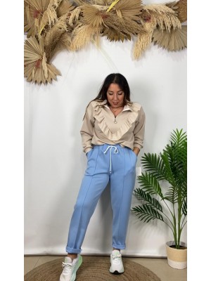 º Pantalón deportivo básico con cintura elástica y cordón ajustable.