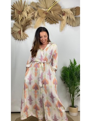 º Vestido camisero con largo midi, bolsillos laterales y cinturón de la misma tela.