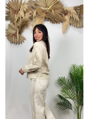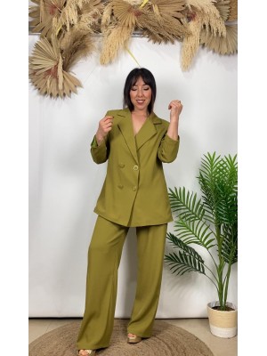 º Talla L chaqueta de sisa a sisa 53cm y largo 69cm, el pantalón de cintura tiene de contorno 80cm y de cadera 110cm, cierre con cremallera en la parte de atrás.