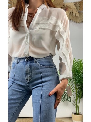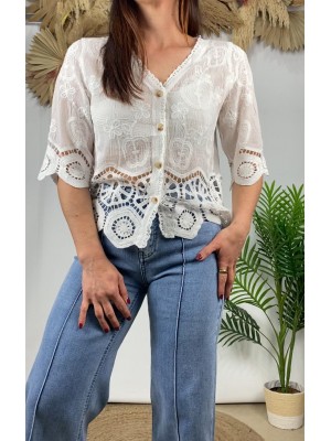 º Se abrocha mediante botón en la parte de la espalda dejando al descubierto un poco de ella.