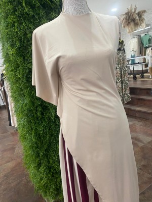 º Incluye forro interior de algodón y tejido gasa, largo midi y va atado al cuello.