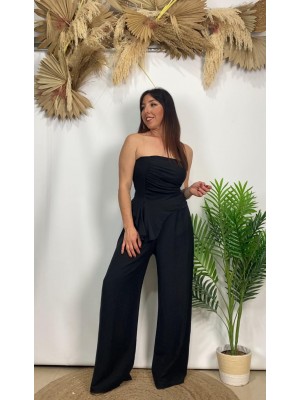 º Conjunto compuesto por 2 piezas, pantalón de pata ancha y cintura elástica, incluye bolsillos, parte de arriba cierre con botón y cinturón.