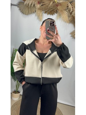 º Leggins tiro alto y chaqueta con bolsillos laterales y cierre con cremallera.