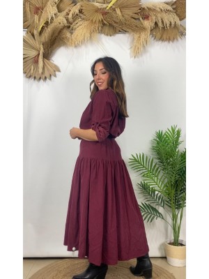 º Conjunto compuesto por 2 piezas, pantalón de pata ancha y cintura elástica, incluye bolsillos, parte de arriba cierre con botón y cinturón.