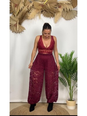 º Este elegante pantalón de encaje combina estilo y comodidad en una sola prenda. Confeccionado en un delicado tejido de encaje elástico, se adapta a diferentes tipos de cuerpo ya que su cintura es elástica.