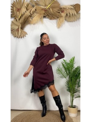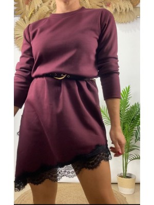 º Vestido con encaje en la parte baja, cuello redondo y manga larga.
