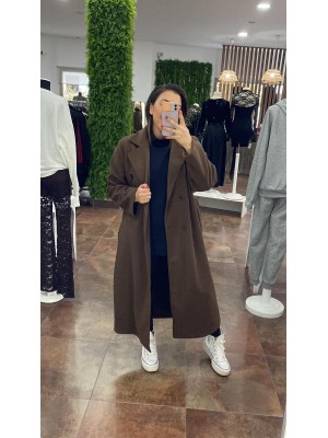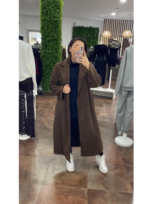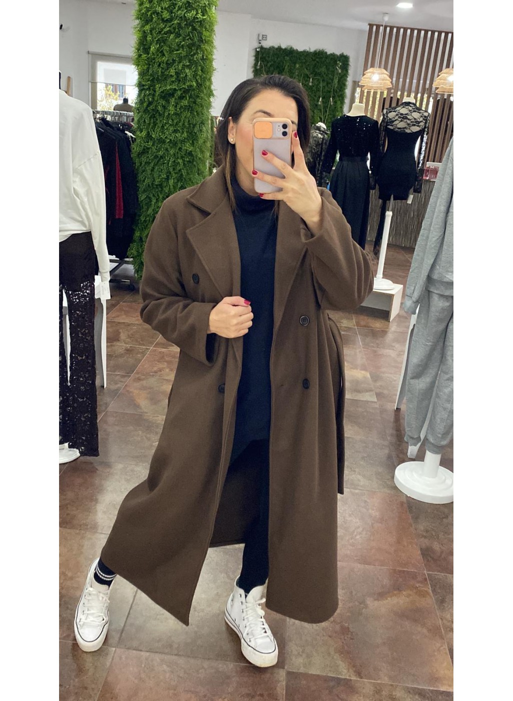 º Abrigo con tejido paño, cierre con botones, cinturón de la misma tela.