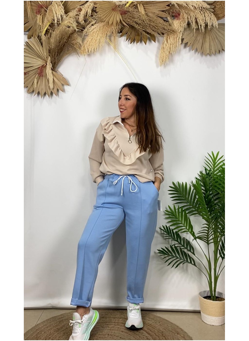 º Pantalón deportivo básico con cintura elástica y cordón ajustable.