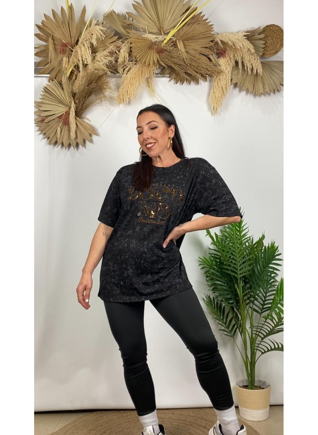 º Camiseta con estampado de lentejuelas.
