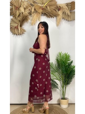 º Incluye forro interior de algodón y tejido gasa, largo midi y va atado al cuello.
