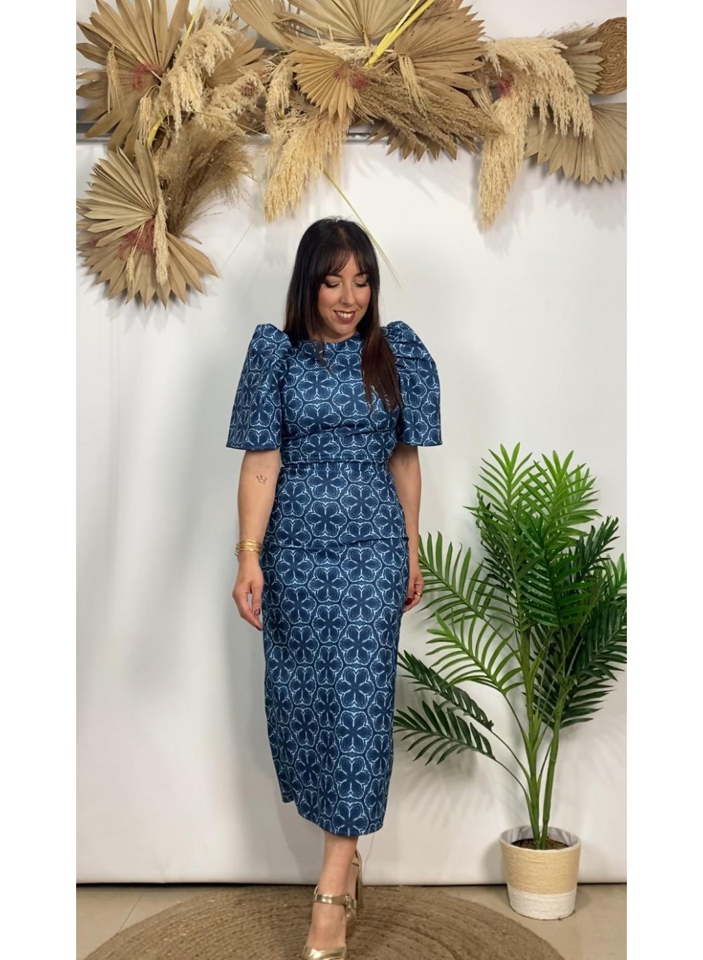 º Falda con abertura trasera, largo midi.